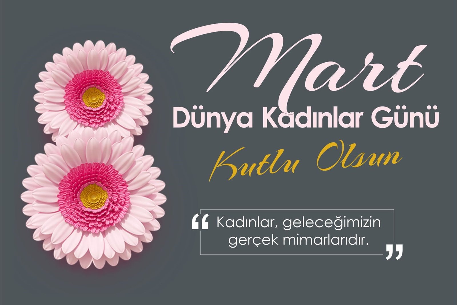Cumhuriyet’in kurulmasıyla birlikte “kadınların eşit haklara sahip olması gerektiği” gibi aydınlık bir düşünceyle yurdumuz kadınlarına dünyanın birçok ülkesinden önce sosyal ve siyasal (seçme ve seçilme gibi) haklar verilmiştir. Ancak bu haklar, çoğunlukla yasal düzeyde kalmış ve sosyal alanda aynı hızla ilerleme sağlanamamıştır. Ne yazık ki ülkemiz, kadınların okuma-yazma oranı, eğitim düzeyi, çalışma yaşamına ve siyasi yaşama aktif katılımı, kadın sağlığı konusundaki göstergeler, çocuk yaşta evlilikler, kadın cinayetleri açısından değerlendirildiğinde gösterilen tüm çabalara ve ilerlemelere rağmen hala olmasını arzu ettiğimiz noktadan çok uzaktır. Eğitim ve çalışma hayatında kadın erkek eşitliği sağlanamamıştır. Kadınların kamusal alanda rol almaları ve karar verici konumda olmaları eşitlikten hala çok uzaktır. Toplumsal cinsiyet kalıpları en fazla kadınları olumsuz etkilemekte, kadına yönelik şiddet, töre veya namus cinayetleri, aile içi şiddet, çocuk yaşta evlilikler, cinsel istismar gibi asla kabul edilemez ve hoş görülemez olaylar yaşanmaya devam etmektedir. Böyle devam ettiği sürece de sadece kadınları değil, onlarla birlikte yetiştirdikleri çocukları ve dolayısıyla aileleri, en nihayetinde de tüm toplumu sağlıksız bir gelecek bekliyor olacaktır. Toplumun kalbinde kanayan bu büyük yaranın kapatılabilmesi için herkes elini taşın altına koymak zorundadır. Bu nedenle bu özel günde amacımız sadece kadınları kutlamak ve övgüler yağdırmak olmamalı; kadın hakları, cinsiyet ayrımcılığı ve eşitsizliği, çocuk gelinler, kadına şiddet gibi konuları da gündeme getirerek tartışabilmeli, kadına yönelik ayrımcılık ve bunun uzantısı olan şiddetin bir insan hakları ihlali olduğunu unutmadan bilinçlendirmeyi ve farkındalık yaratmayı hedeflemeliyiz.